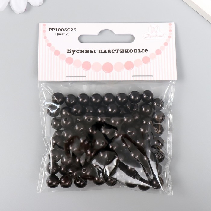Набор бусин "Рукоделие" пластик, диаметр 8 мм, 25 гр, черный