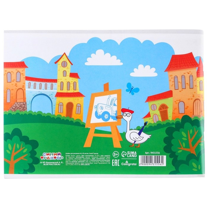 Альбом для рисования А4, 40 листов 100 г/м², на склейке, Синий трактор