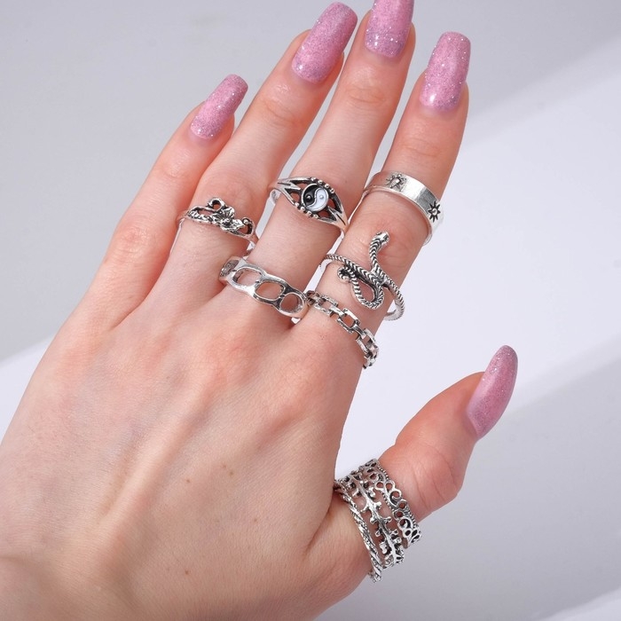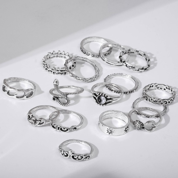 Набор колец 16 штук «Ассорти» астрономия, размер МИКС, цвет чернёное серебро
