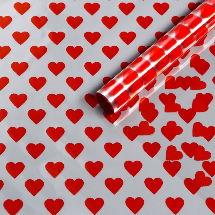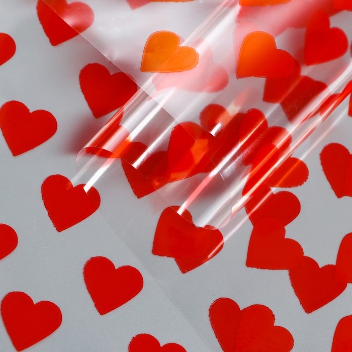 Пленка цветная "Сердца", красная, 0,7 х 7,6 м, 40 мкм, 200 гр