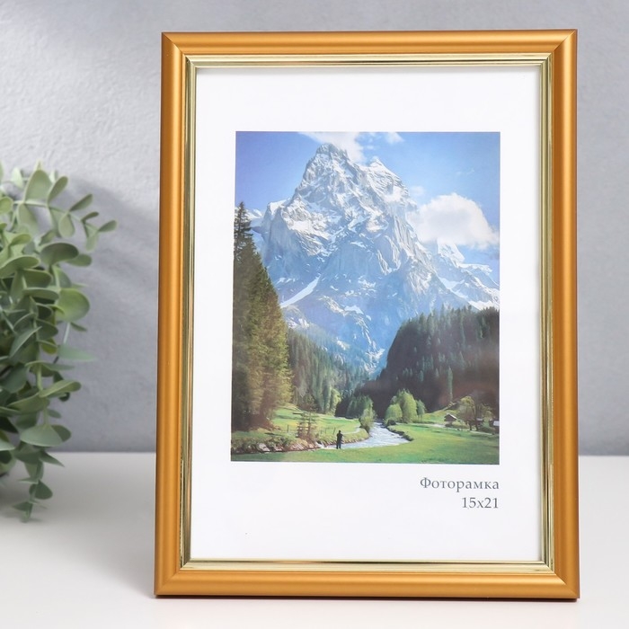 Фоторамка пластик "Гамма" 15х21 см, матовое золото