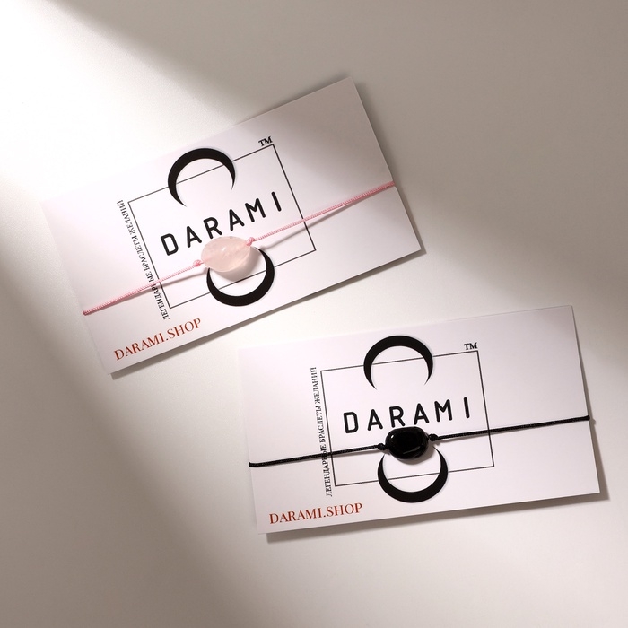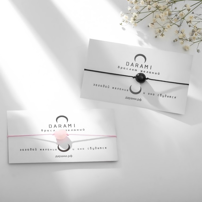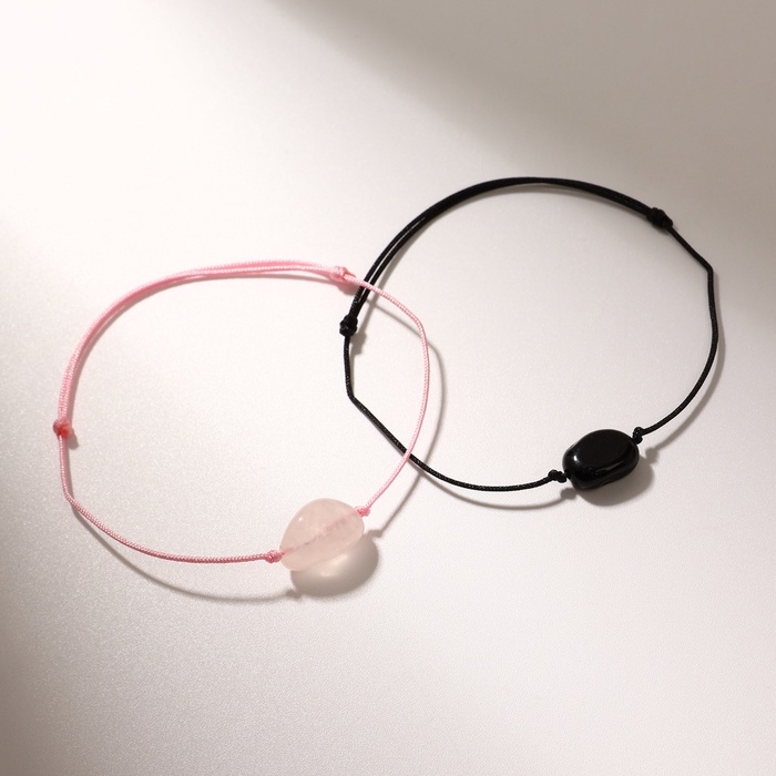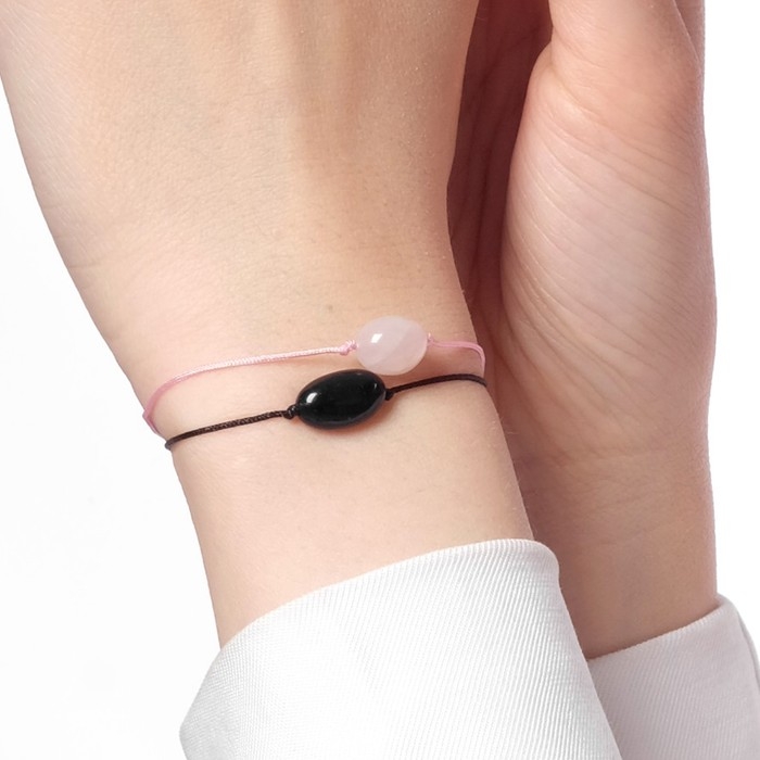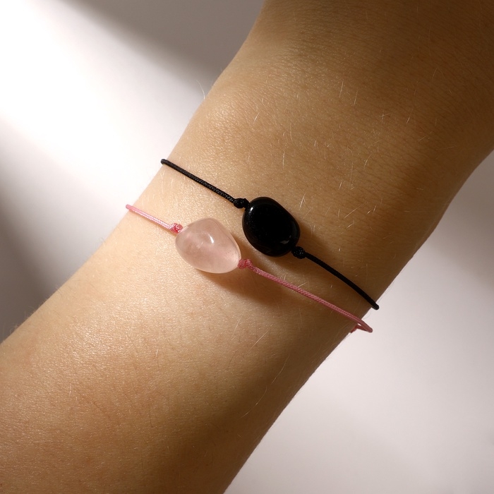 Парные браслеты желаний «Кварц розовый с обсидианом» инь-ян на розовой и чёрной нитях, 11см