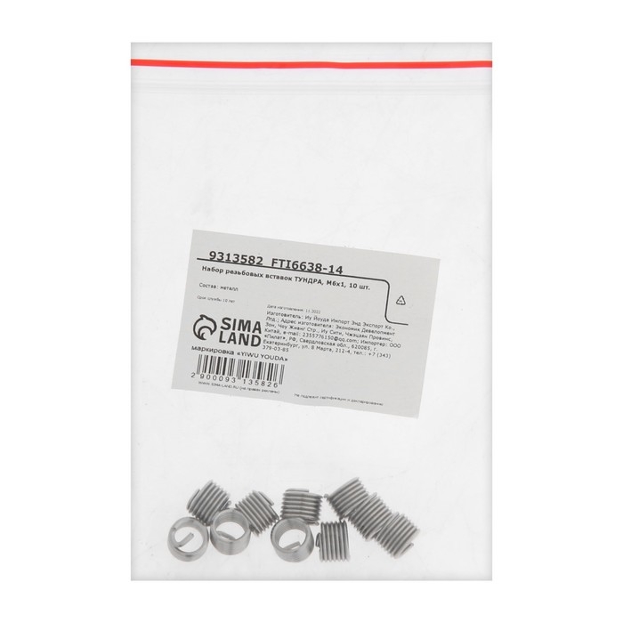 Набор резьбовых вставок ТУНДРА, М6х1, 10 шт.