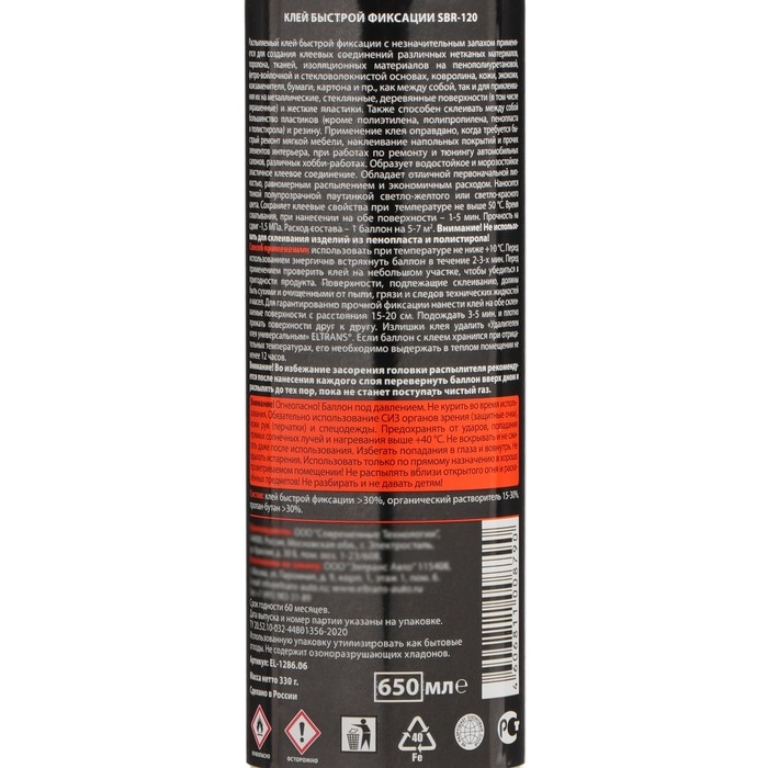 Клей быстрой фиксации Элтранс SBR-120, 650 мл, аэрозоль EL-1286.06