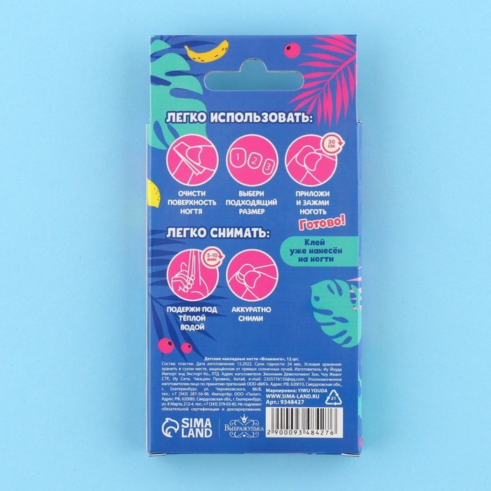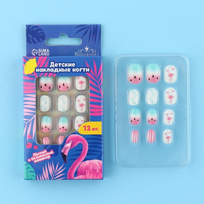 Детские накладные ногти «Фламинго», 12 шт