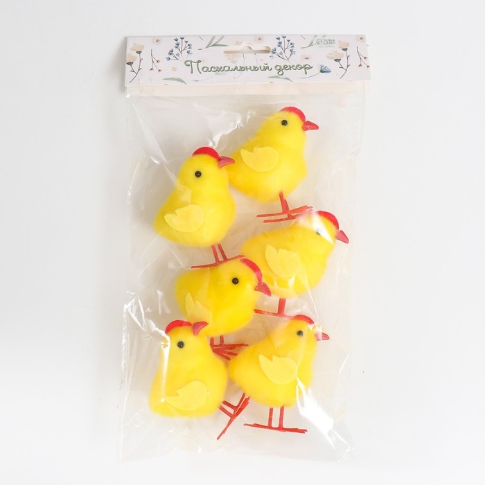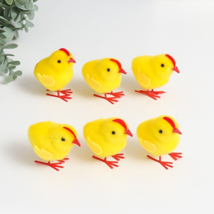 Сувенир пасхальный "Цыплята с гребешком" набор 6 шт жёлтый 3х6х6,5 см