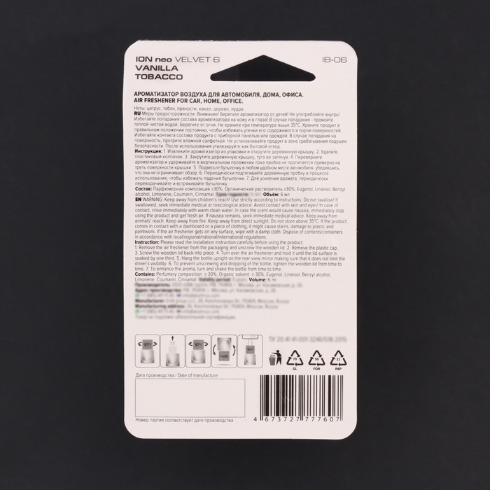 Ароматизатор подвесной бутылочка ION VELVET 6, 6 мл, IP-06