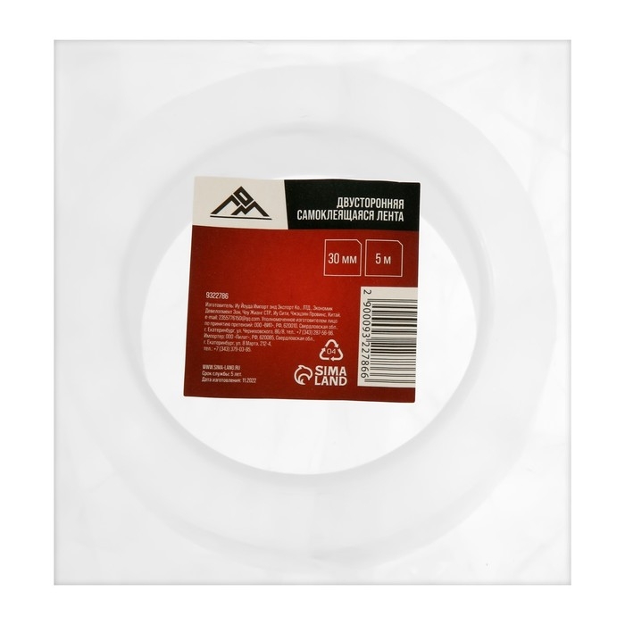 Двусторонняя самоклеящаяся лента ЛОМ, 30 мм х 5 м