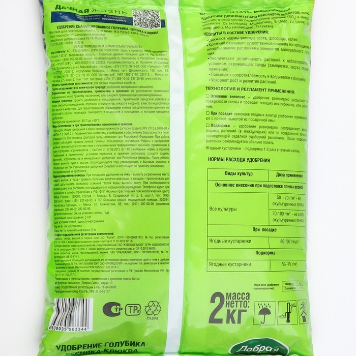 Сухое удобрение Добрая сила, для Голубики,Черники, Клюквы, 2 кг
