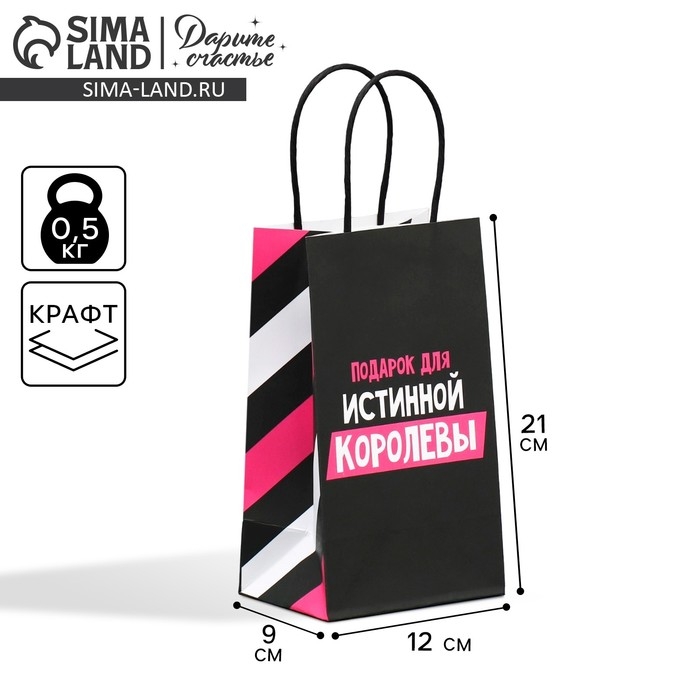 Пакет подарочный крафтовый, упаковка, «Королева», 12 х 21 х 9 см