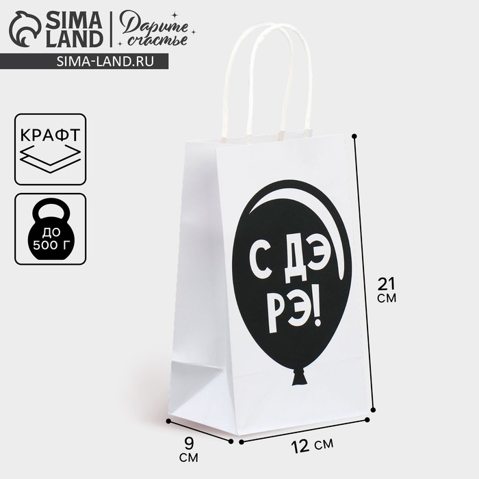 Пакет подарочный крафтовый, упаковка, «ДР», 12 х 21 х 9 см