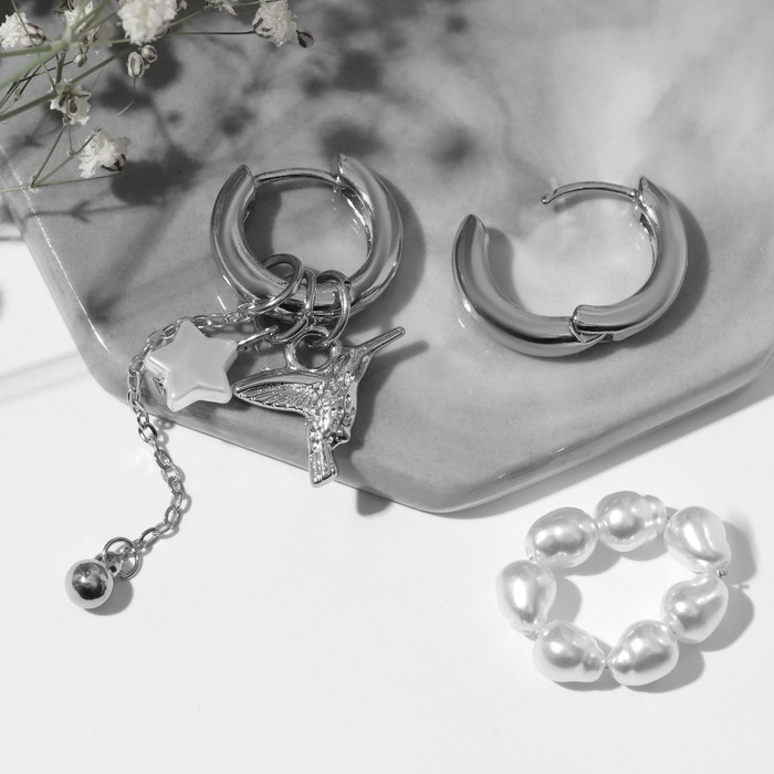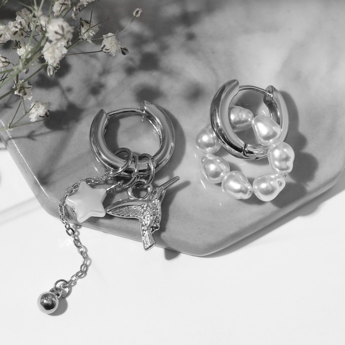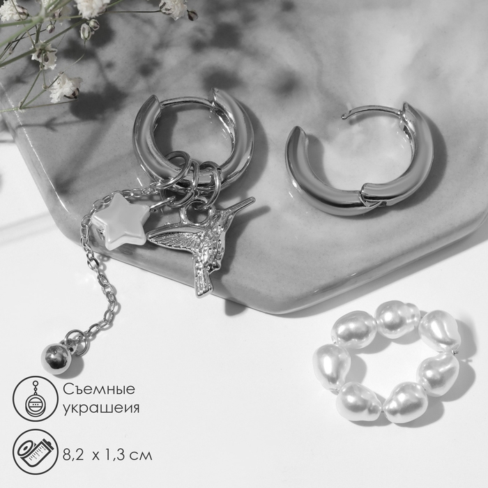 Серьги со съёмным элементом «Трансформер» птица, цвет белый в серебре
