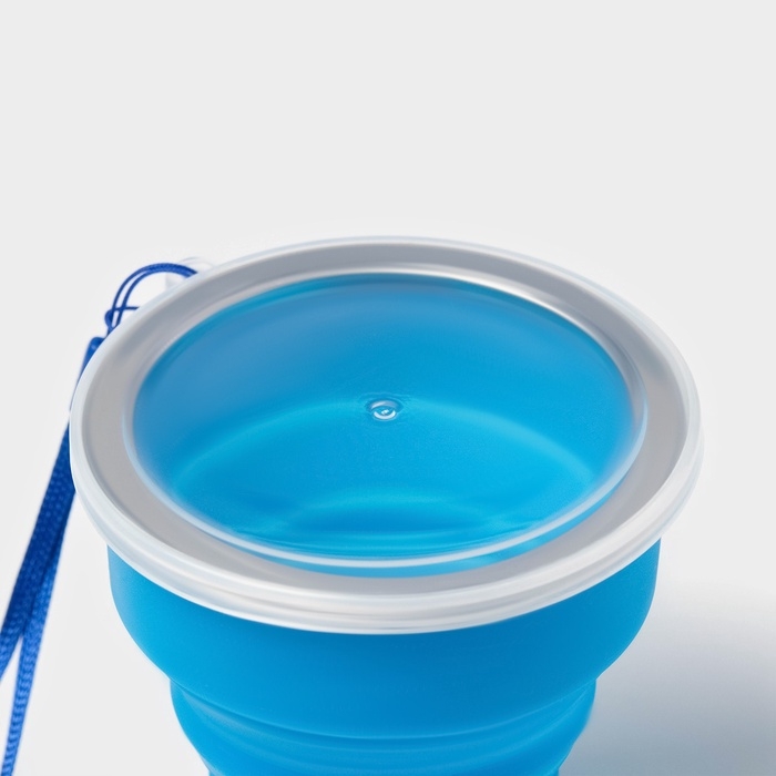 Стакан силиконовый складной с крышкой Доляна «Айли», 200 мл, 8,5×9 см, цвет синий