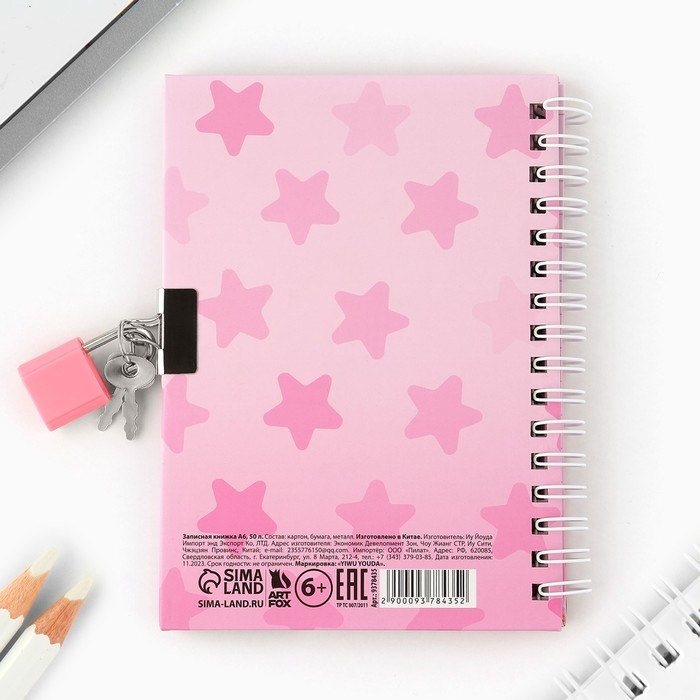 Записная книжка на замочке А6, 50 листов «Секретики милашки»