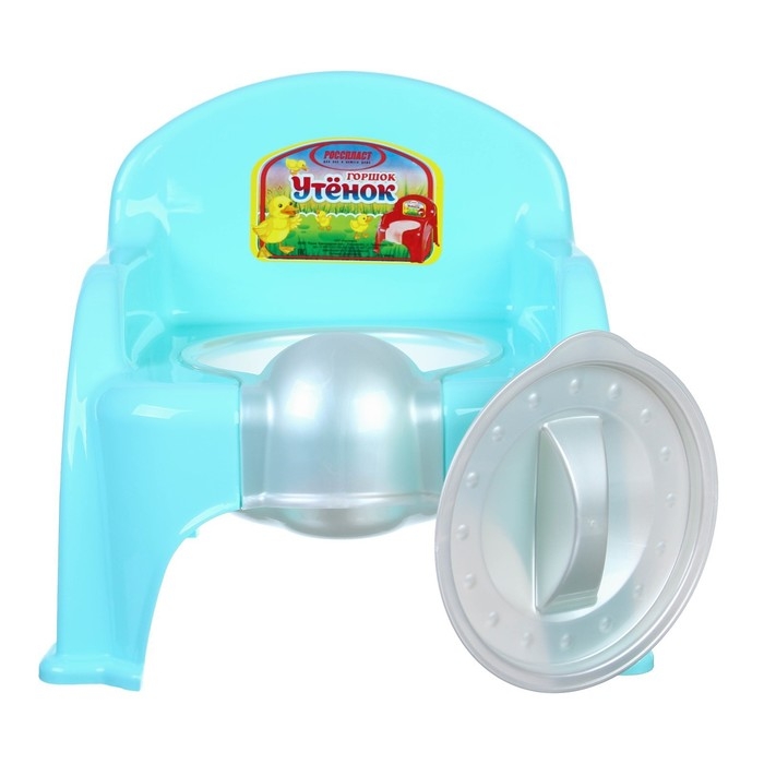 Горшок детский «Утенок» с крышкой, светло-бирюзовый / белый 310х295х280мм