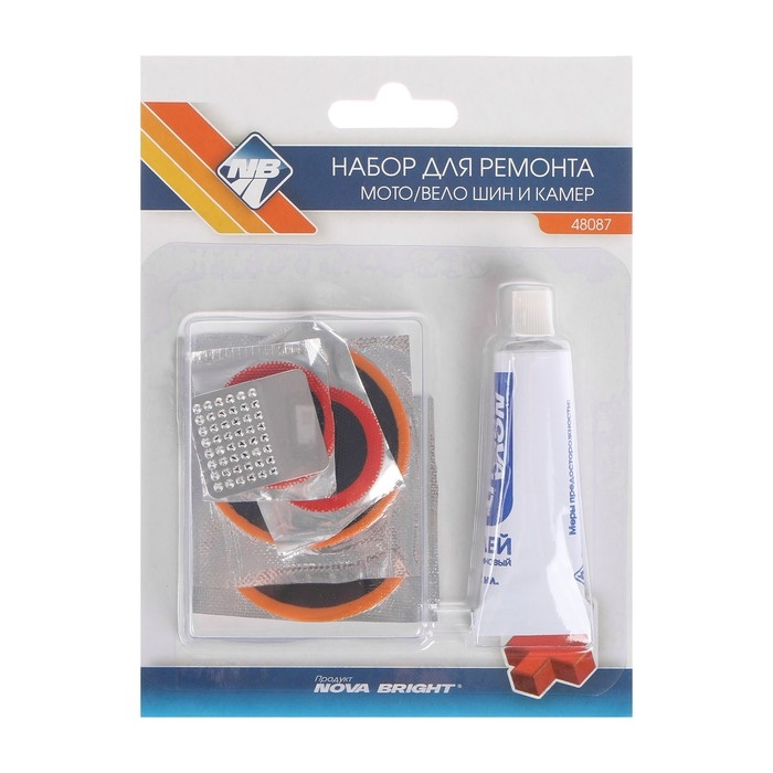 Набор заплаток для ремонта камер Nova Bright, 2 шт - 50 мм, 2 шт - 25 мм, клей, рашпиль