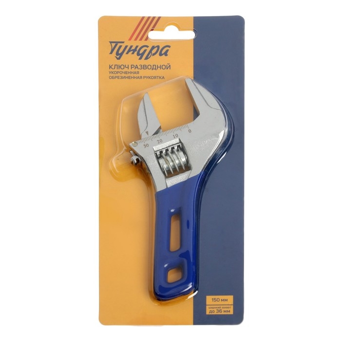 Ключ разводной ТУНДРА, укороченная обрезиненная рукоятка, широкий захват до 36 мм, 150 мм