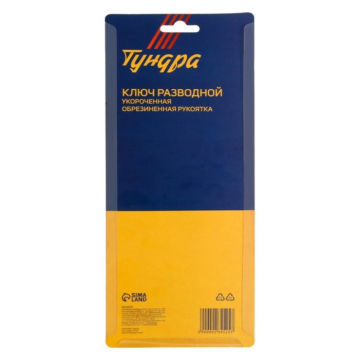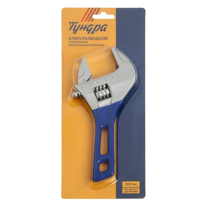 Ключ разводной ТУНДРА, укороченная обрезиненная рукоятка, широкий захват до 45 мм, 200 мм