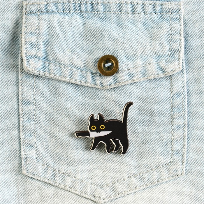 Значок - пин лёгкий и не оттягивает изделие. Рисунок нанесен с помощью УФ-печати, благодаря этому значок имеет четкое изображение и глянцевую поверхность. Значок устойчив к царапинам, не выгорает на солнце. Крепление значка - булавка.