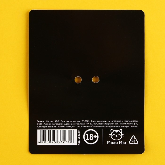 Значок - пин лёгкий и не оттягивает изделие. Рисунок нанесен с помощью УФ-печати, благодаря этому значок имеет четкое изображение и глянцевую поверхность. Значок устойчив к царапинам, не выгорает на солнце. Крепление значка - булавка.