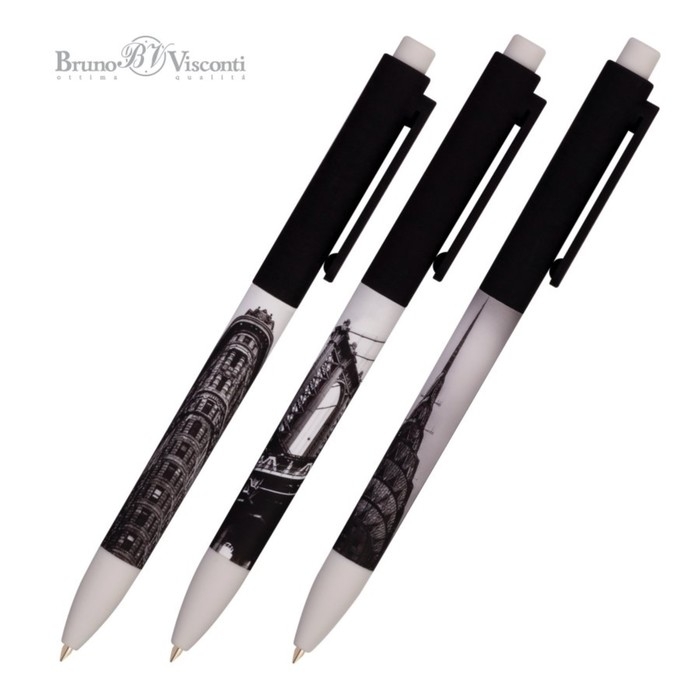 Ручка шариковая автоматическая FreshWrite FunClick. New York, узел 0.7 мм, синие пигментные чернила, корпус Soft Touch, МИКС