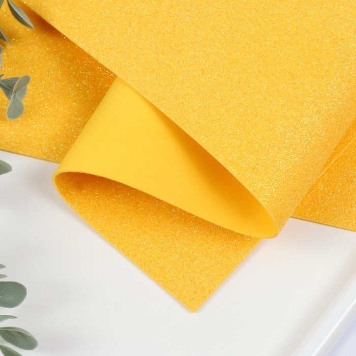 Фоамиран глиттерный 2 мм, 50х50 см, жёлтый