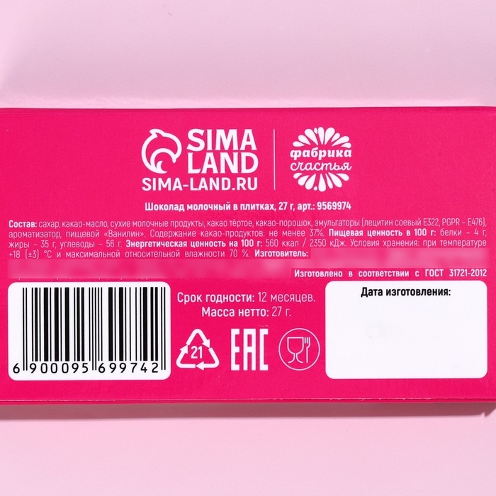 Состав: сухое цельное молоко, какое тёртое, масло какао, сухая молочная сыворотка, обезвоженный молочный жир, сахар, эмульгатор: соевый лецитин, ароматизатор, идентичный натуральному «Ванилин».