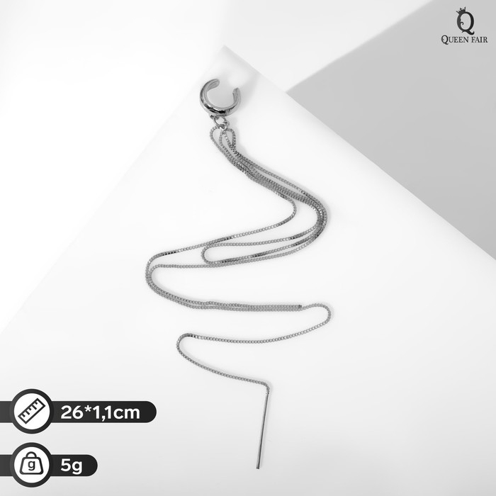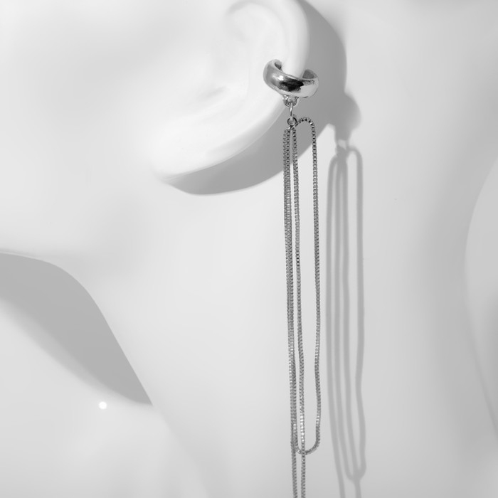 Серьга «Кафф» две полоски с цепочками, цвет серебро