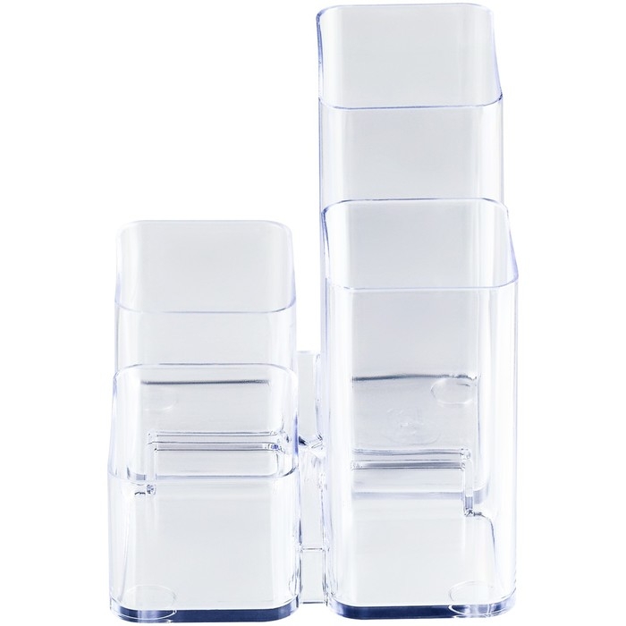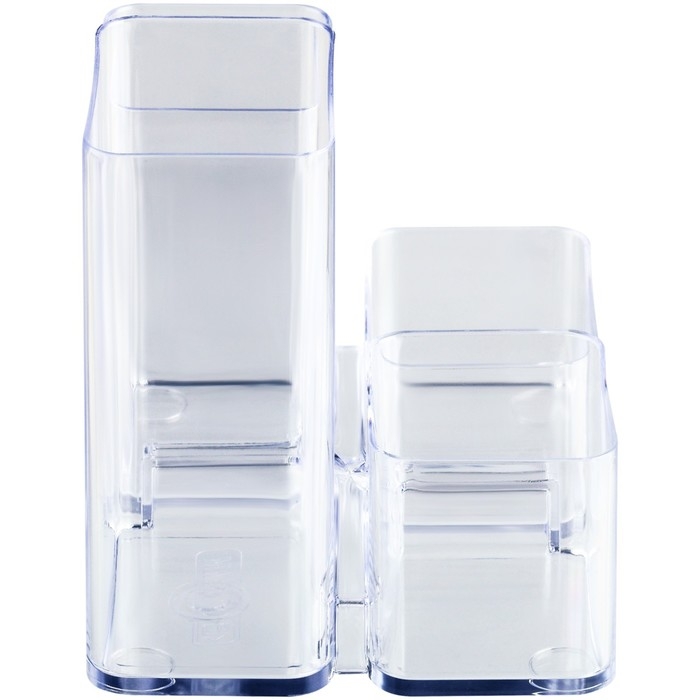 Настольная подставка предназначена для хранения канцелярских принадлежностей. Прочный корпус, оригинальный дизайн. Размер изделия - 10,2 х 10,8 х 8 см. Подставка имеет 4 отделения разных размеров. Изготовлена из качественного полистирола. Цвет изделия - прозрачный.