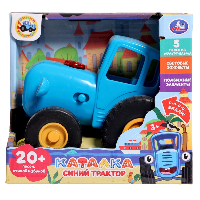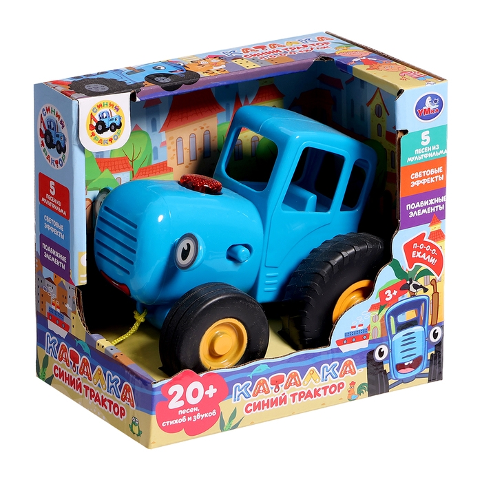 Музыкальная каталка детская на верёвке «Синий трактор», 20 песен, стихов звуков, свет