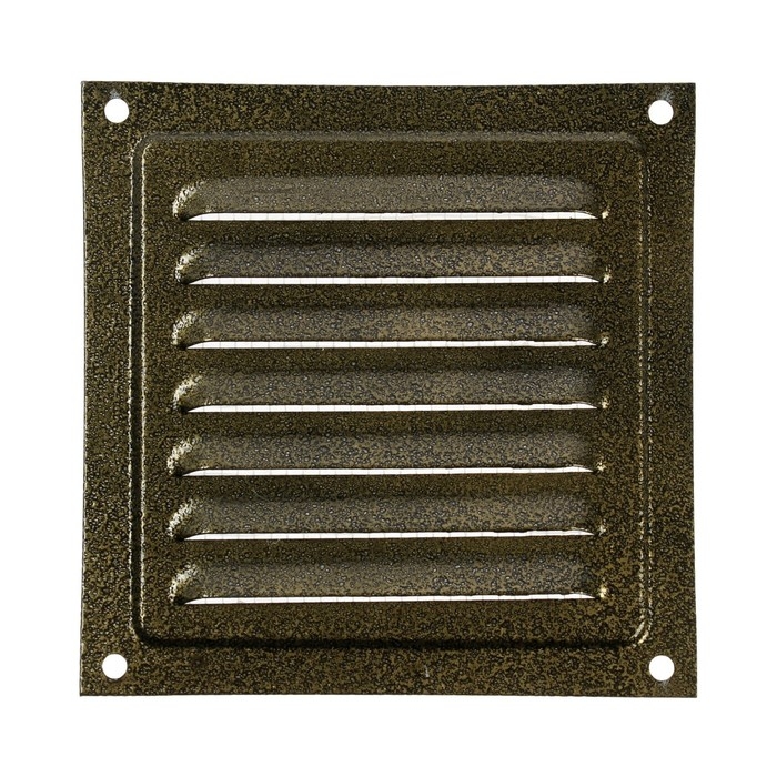 Решетка вентиляционная ZEIN Люкс РМ1212З, 125 х 125 мм, с сеткой, металлическая, золотая