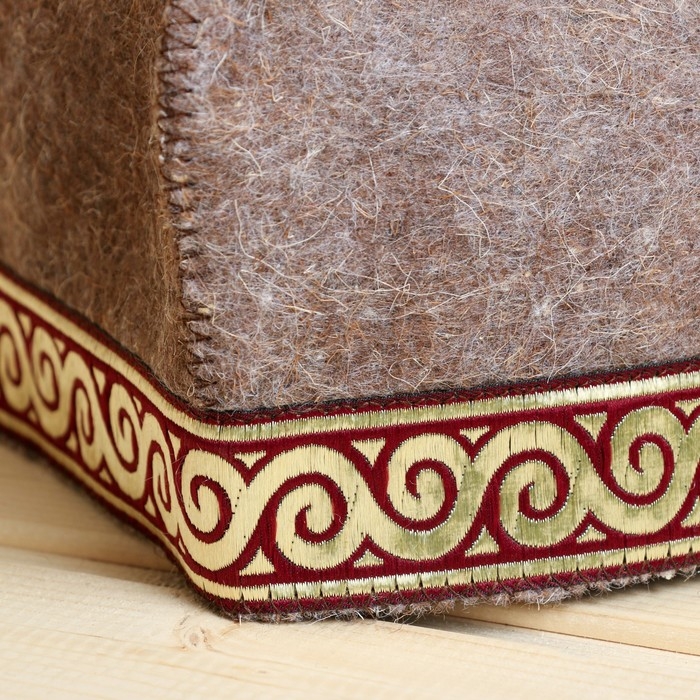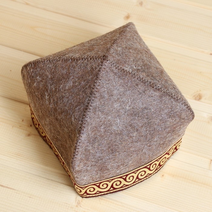 Шапка для бани "Тюбетейка", коричневая с красной отделочной лентой