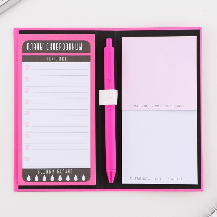 Блок для записей 3 шт. по 30 листов, стикеры, ручка шариковая синяя паста 0,7 мм «Набор склерозницы»