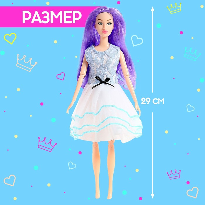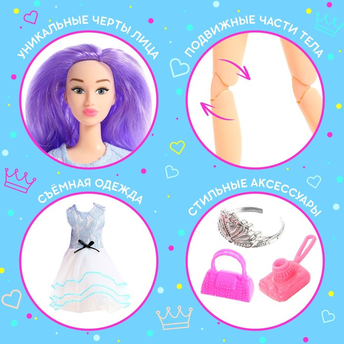 Кукла шарнирная, у нее сгибаются руки и ноги. В комплекте идут фотоаппарат, сумочка и корона для настоящей модницы. Прекрасный образ, чтобы отправиться вместе с куклой на прогулку или встречу с подругами. Используйте тубус для хранения мелких детских вещей.