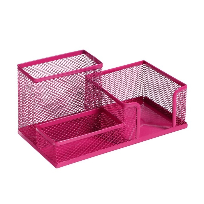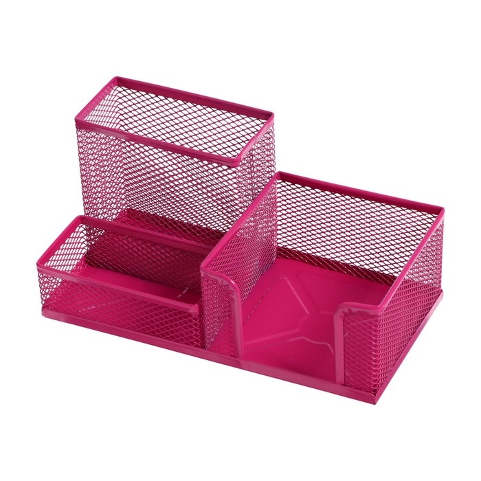 Подставка для канцелярских мелочей 3 отделения сетка металл розовая