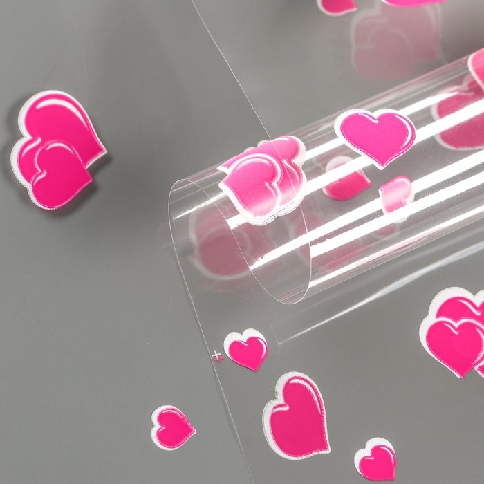 Пленка для цветов "Сердечки" яр.розовая 0,7 х 8.2 м, 40мкм