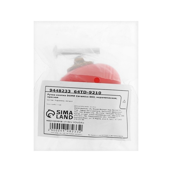 Ручка кнопка DOME Ceramics 003, керамическая, красная