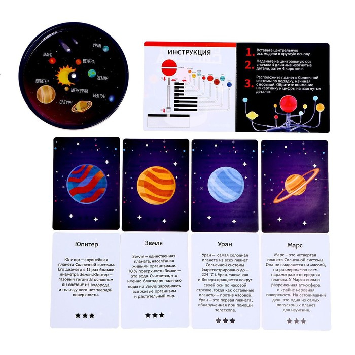 Изучать космос веселее, когда под рукой есть настоящая модель Солнечной системы. Скорее собирайте её и изучайте созвездия и планеты, которые вращаются вокруг Солнца.