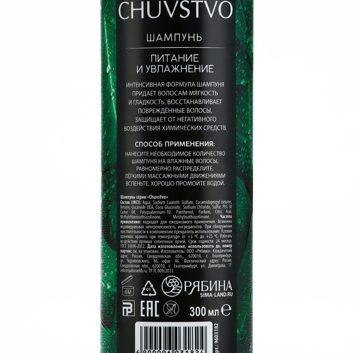 Шампунь для волос, 300 мл, увлажнение и питание, CHUVSTVO by URAL LAB