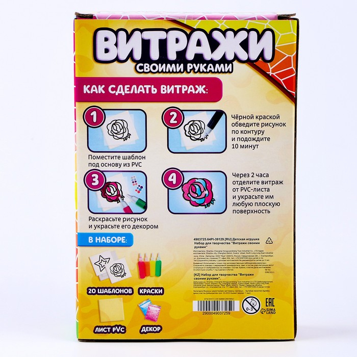 В серии наборов для творчества «Раскрась витражики» представлено 7 видов наборов.