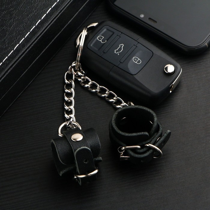 Брелок кожаный для автомобильного ключа, наручники, натуральная кожа