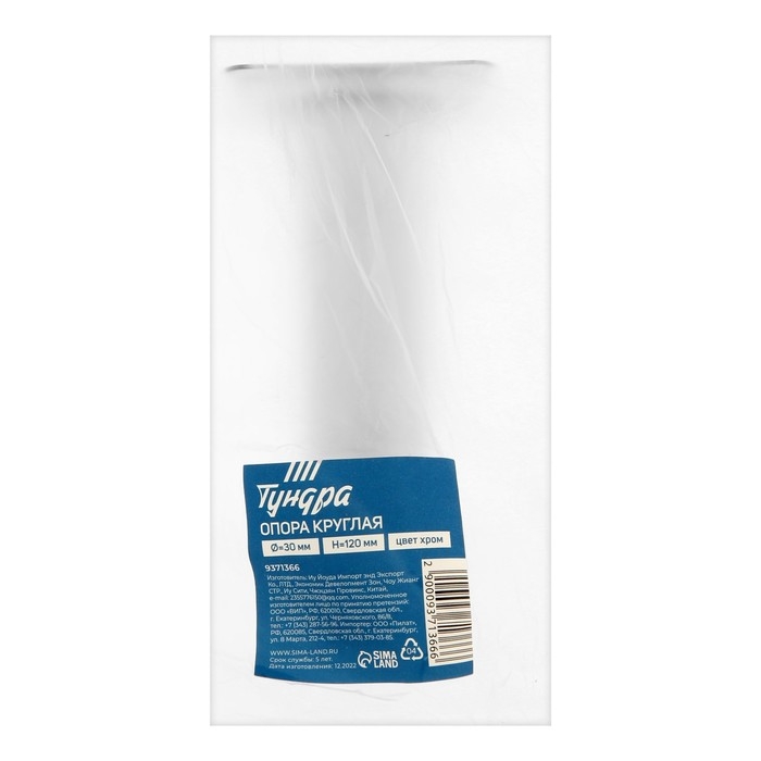 Опора круглая OKR001CR ТУНДРА, d=30 мм, H=120 мм, цвет хром