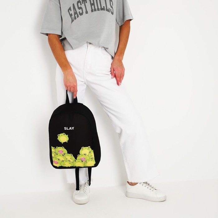 Рюкзак школьный текстильный «Лягушки», 38х14х27 см, цвет чёрный