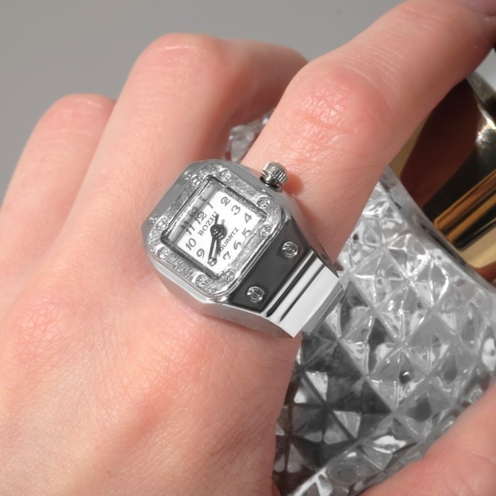 Кольцо «Время» часы квадрат, цвет серебро