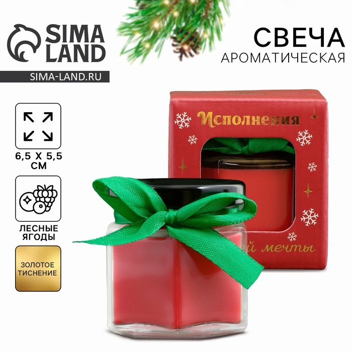 Свеча новогодняя в банке «Исполнения заветной мечты», аромат лесные ягоды, 6,5 х 5,5 см