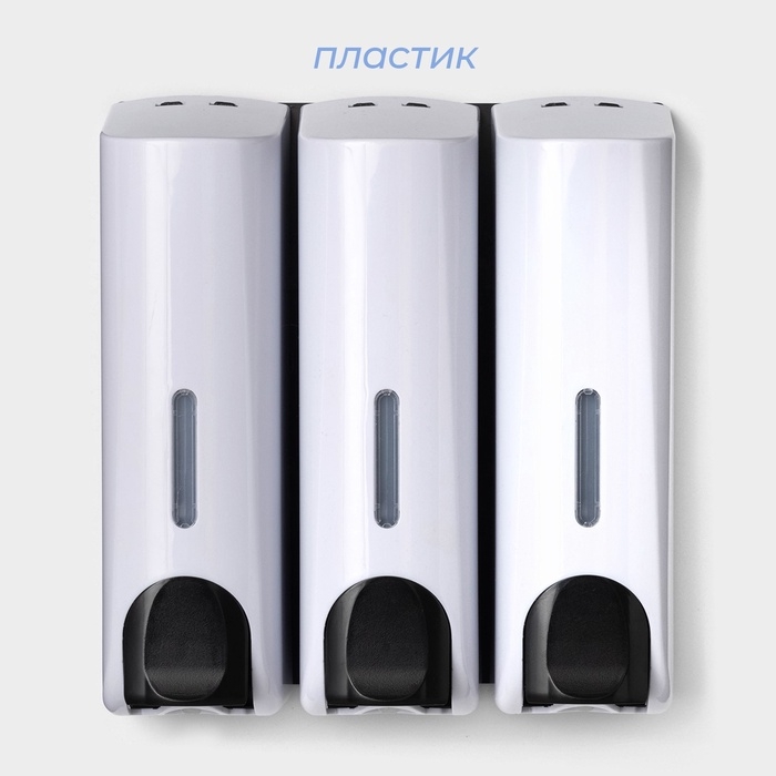 Диспенсер для мыла SAVANNA, механический, 3 отсека по 350 мл: шампунь, кондиционер, гель, белый