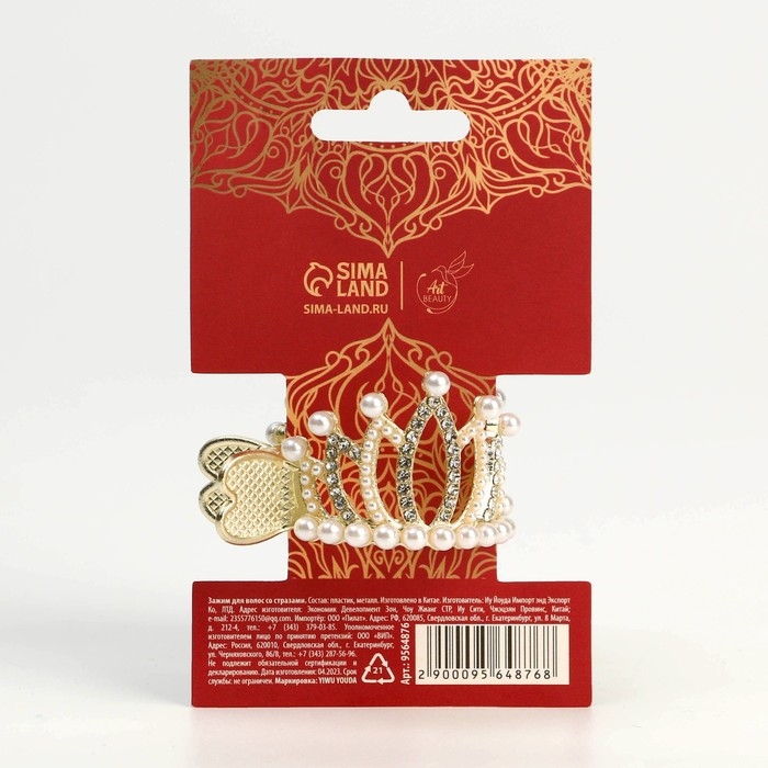 Зажим для волос со стразами «Queen», 3,5 х 4,5 х 3 см