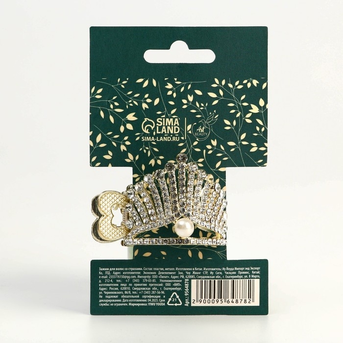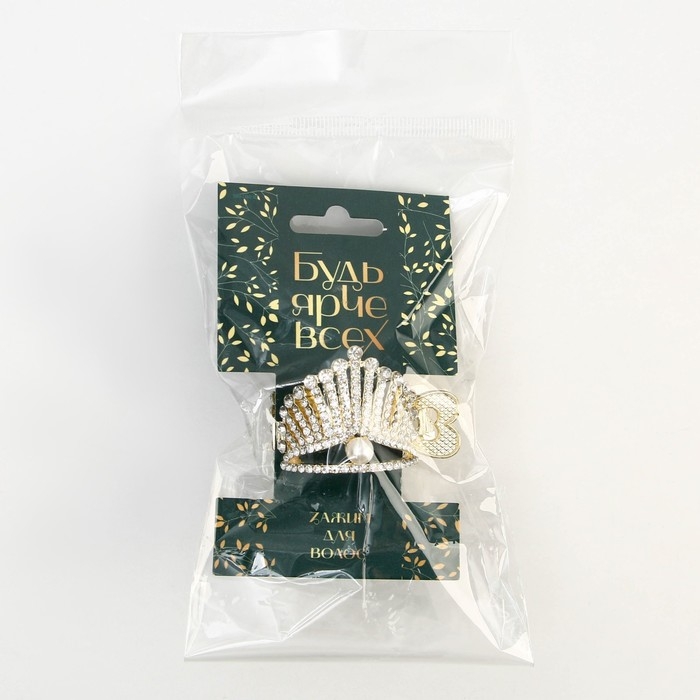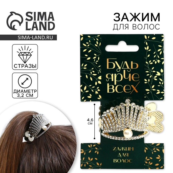 Зажим для волос со стразами «Будь ярче всех», 3,5 х 4,5 х 2.5 см