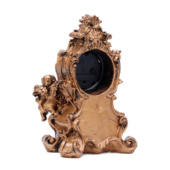Часы настольные представлены в оригинальном дизайне, они отлично впишутся в интерьер в стиле рококо, барокко, классический. Интерьерные часы станут прекрасным декором для дома и дачи, их можно поставить как на прикроватную тумбочку в спальне, детской комнате, гостиной так и на стол или на комод в зале, холле или на кухне. Часы настольные имеют кварцевый механизм, который гарантирует высокую точность хода. Часы на не требуют частой замены батареек (тип АА), благодаря экономичному механизму. Чтобы поменять батарейку, аккуратно подденьте любым острым предметом циферблат, откройте его, внутри должна быть ячейка для батарейки.