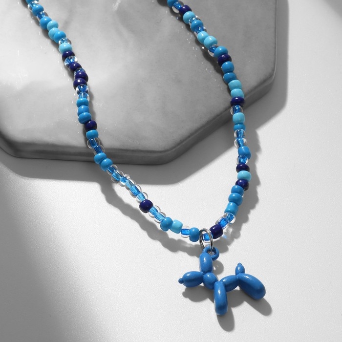 Кулон «Собачка» из воздушных шаров, бисер, цвет синий, 41 см